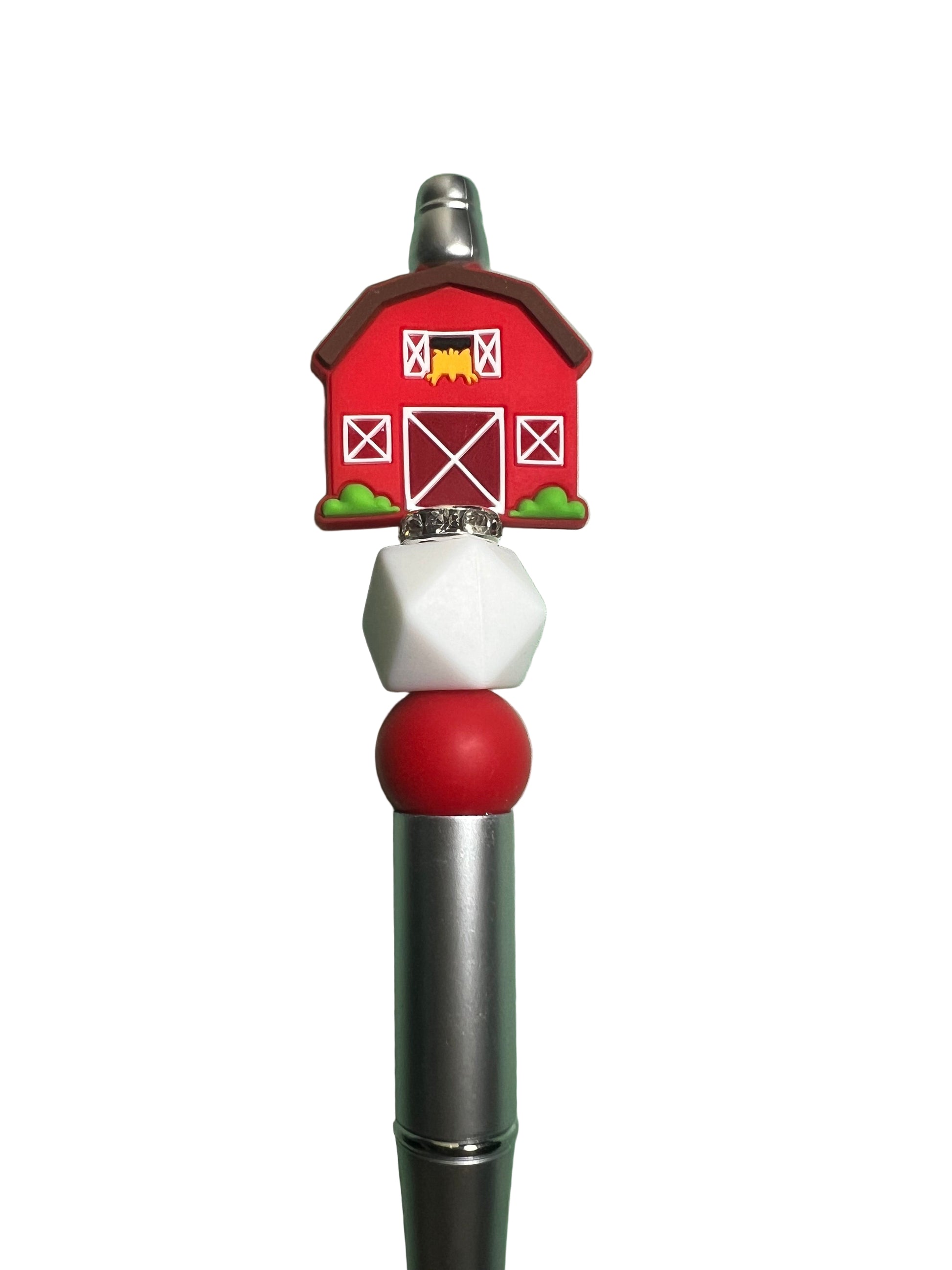 Bring a touch of country charm to your writing with this adorable red barn silicone focal beaded pen! Paired with a sleek silver pen and coordinating beads, itβs the perfect blend of farmhouse style and everyday function. Lightweight and comfortable to hold, this pen makes journaling, note-taking, or working a little more fun.
