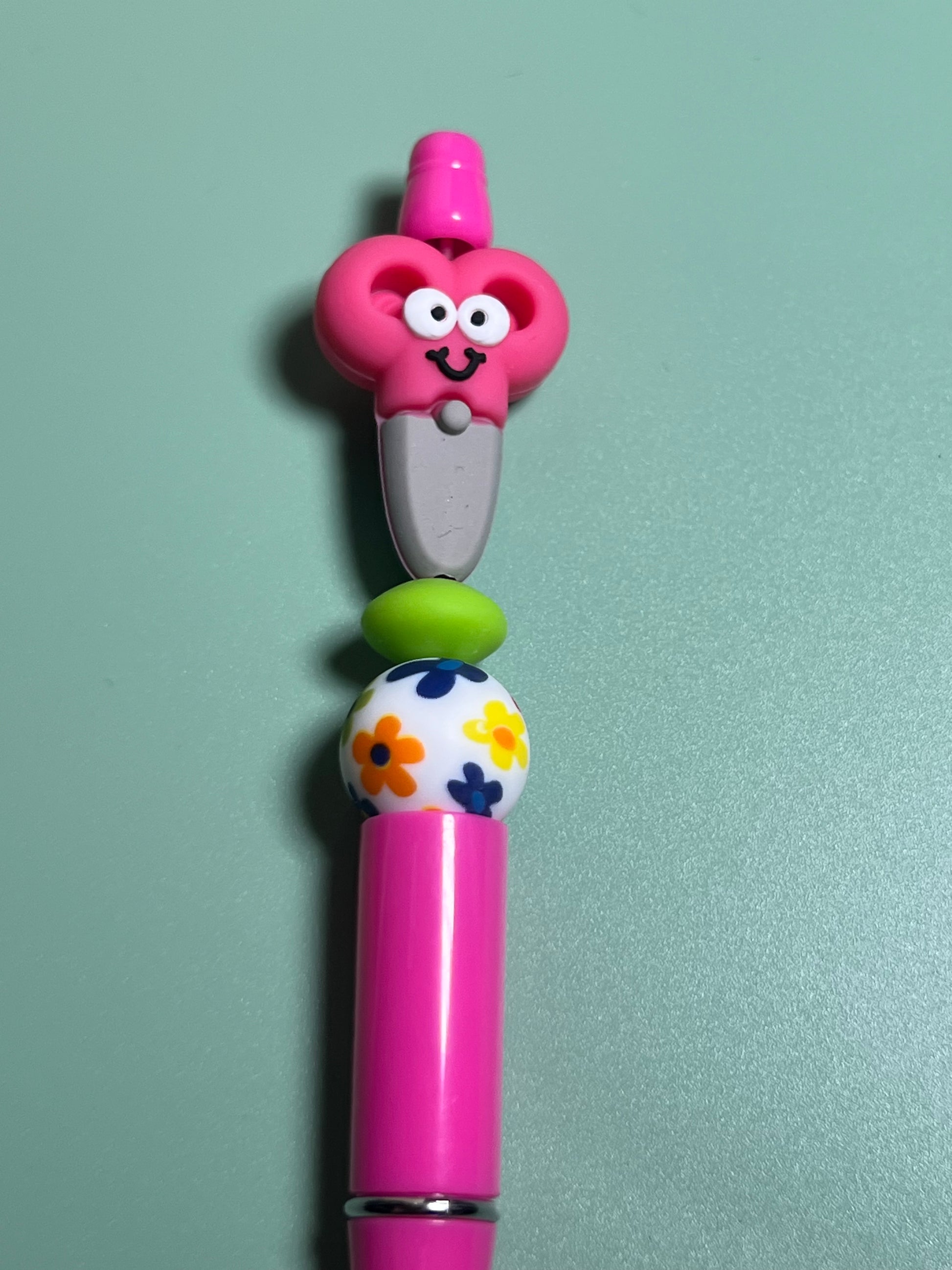 This cute pink beaded pen features an adorable pair of scissors with a smiling face focal. Accented with coordinating beads, it’s a playful and creative pen that’s perfect for hairstylists, crafters, teachers, or anyone who loves a touch of fun in their writing tools. Great for everyday use or as a thoughtful gift!