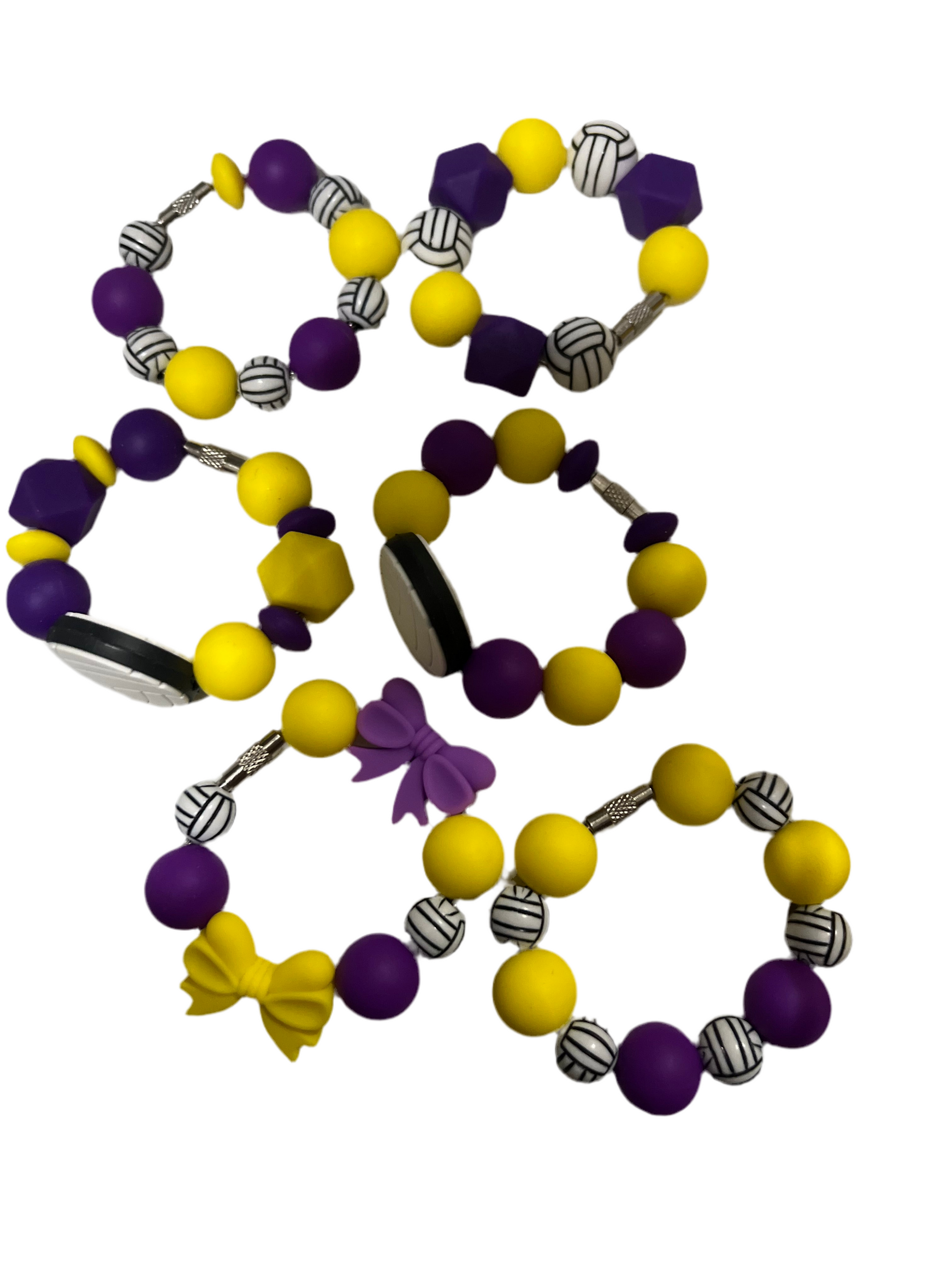 Add a sporty touch to your tumbler with this fun cup charm featuring a volleyball focal bead and silicone beads in your school colors! Perfect for athletes, fans, and proud parents who want to show off their team spirit on the go.
